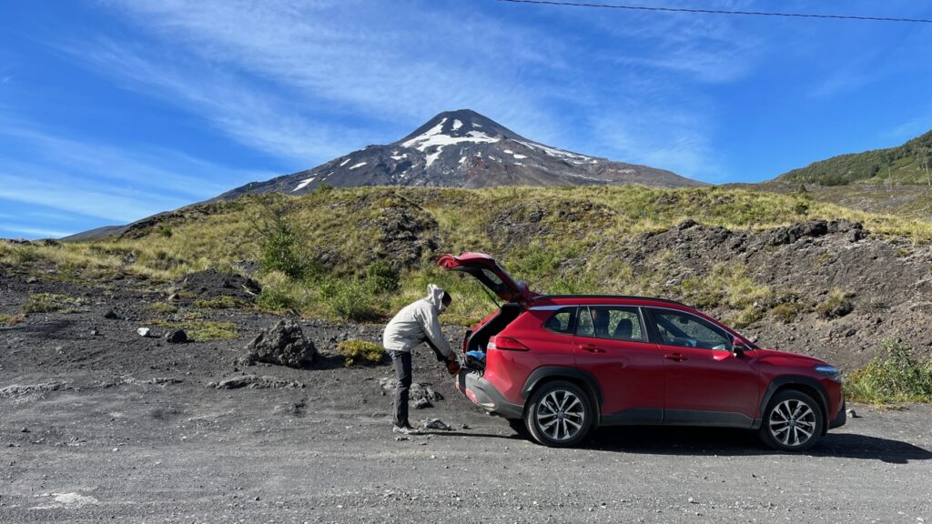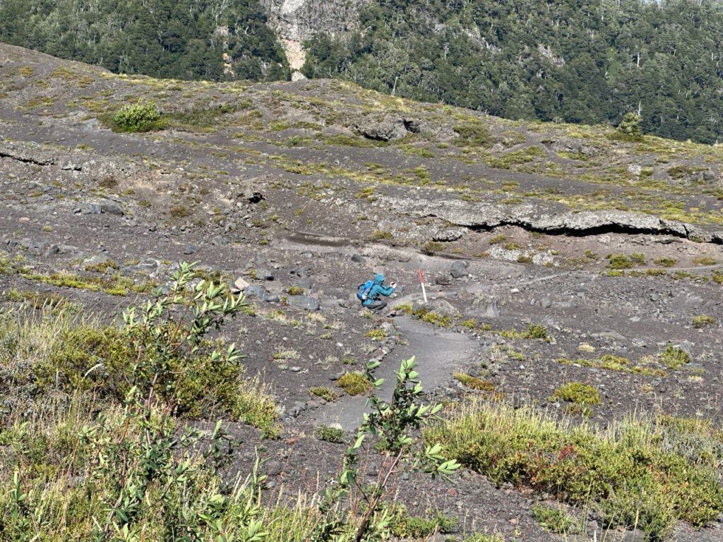 Volcán Villarrica Volcán Villarrica 17. February 2023 Region Arraucania Der Vulkan ist allgegenwärtig und dominiert die Landschaft. Ziemlich windig hier oben… Sendero mirador los crateres Überraschende Begegnung, Durchmesser ca 6cm Beeindruckender Kamin