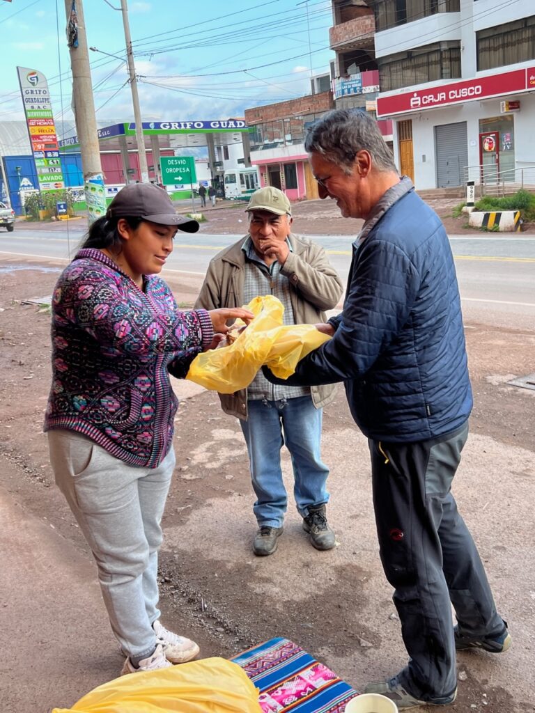 Der Tag beginnt mit einem Halt bei der Bäckerei um pan chuta zu kaufen. Definitiv allseits beliebt 😄😋Hummingbird des Hochlands Gräber aus der Vorinkazeit, 3600müMZwischenhalt in PaucartamboAbenteurerliche Strasse den Flanken der Berge entlangVogelbeobachtungsplattformCock of the rock, Perus Nationalvogel